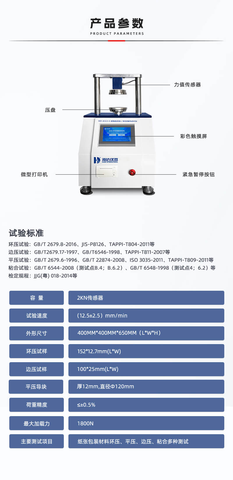 環(huán)壓試驗(yàn)::GB/T 2679.8-2016、JIS-P8126、TAPPI-T804-2011等